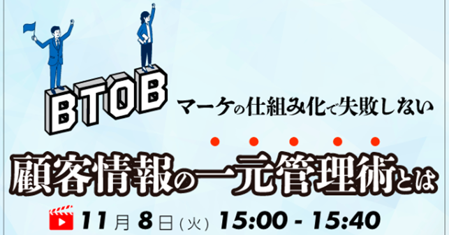 【11月8日(火)ウェビナー】BtoBマーケの仕組み化で失敗しない、顧客情報の一元管理術とは