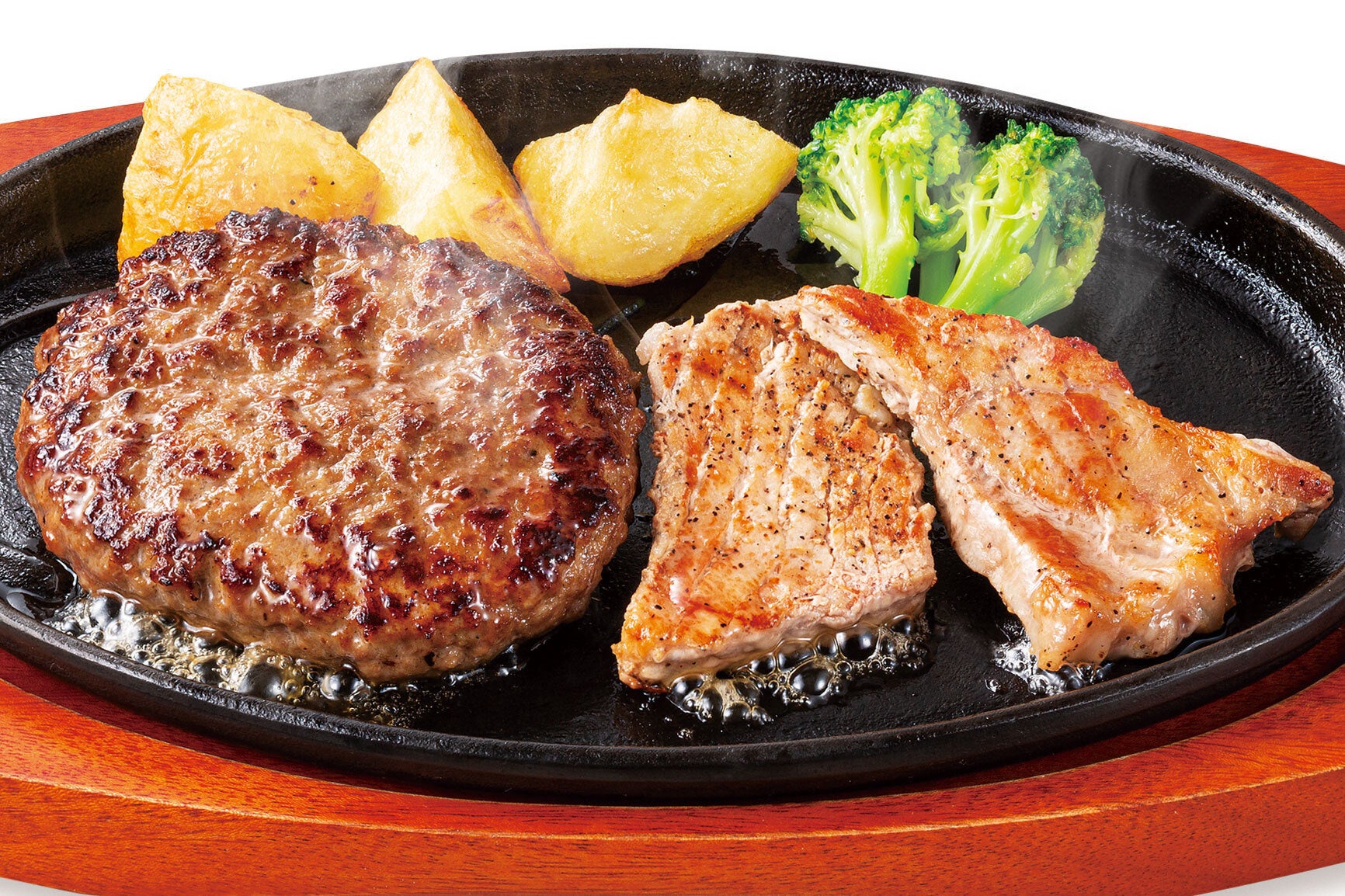 ハンバーグ(130g)&ポークグリル 840円(税込924円)