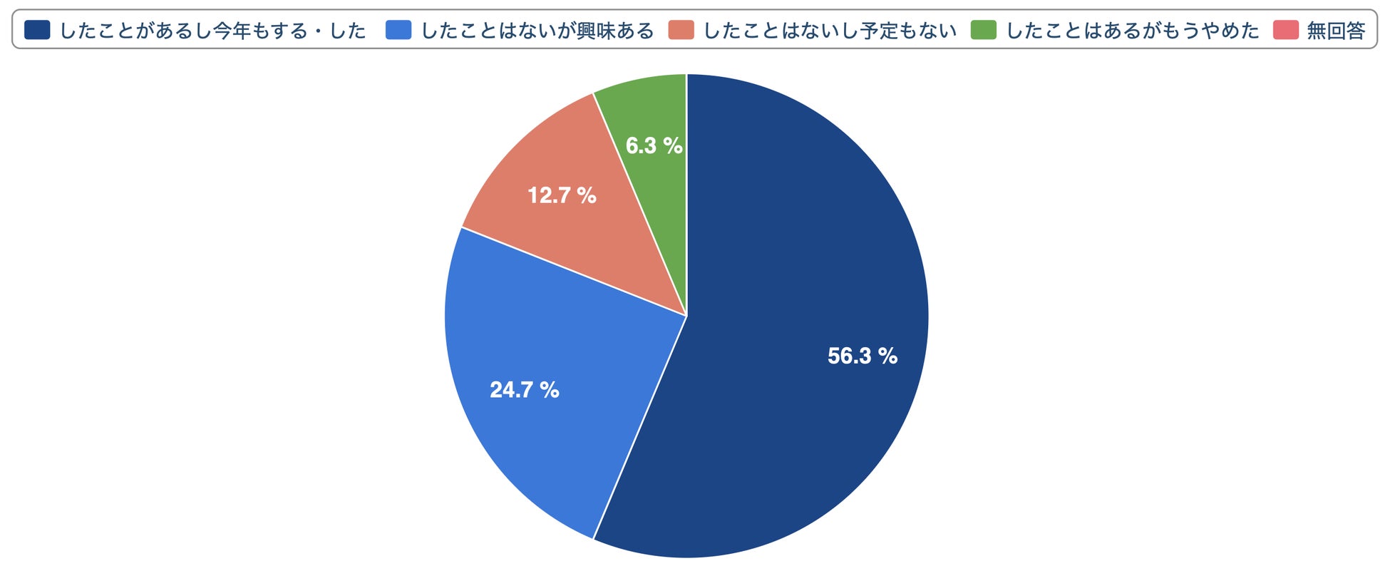 ◯したことがあるし今年もする・した ◯したことはないが興味ある ◯したことはないし予定もない ◯したことはあるがもうやめた