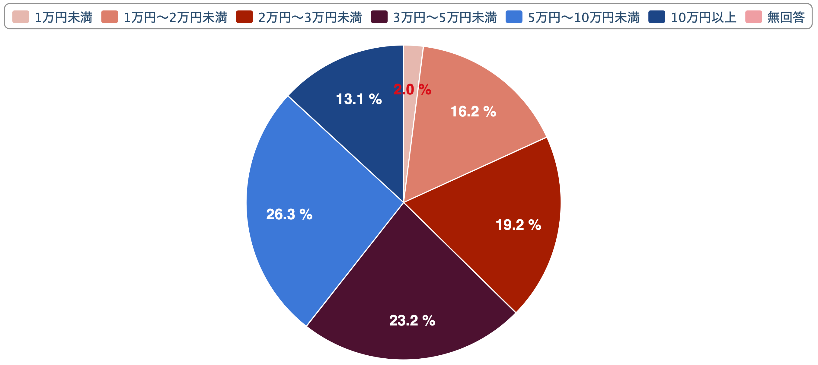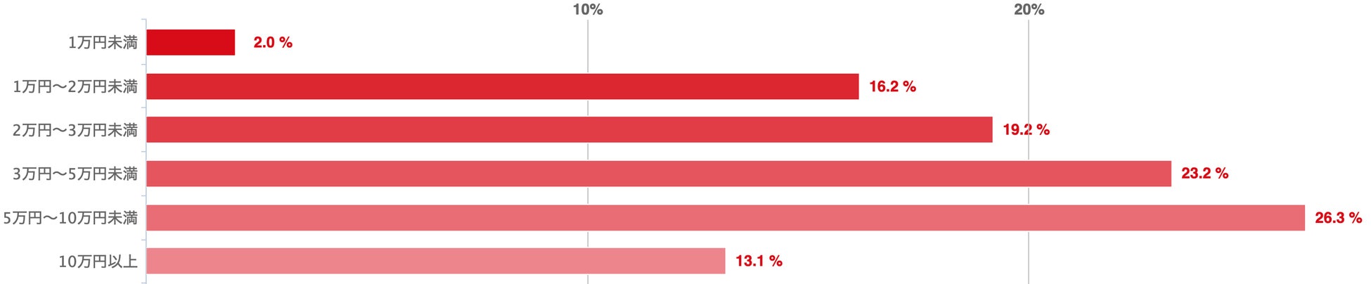 ◯1万円未満 ◯1万円〜2万円未満 ◯2万円〜3万円未満 ◯3万円〜5万円未満 ◯5万円〜10万円未満 ◯10万円以上