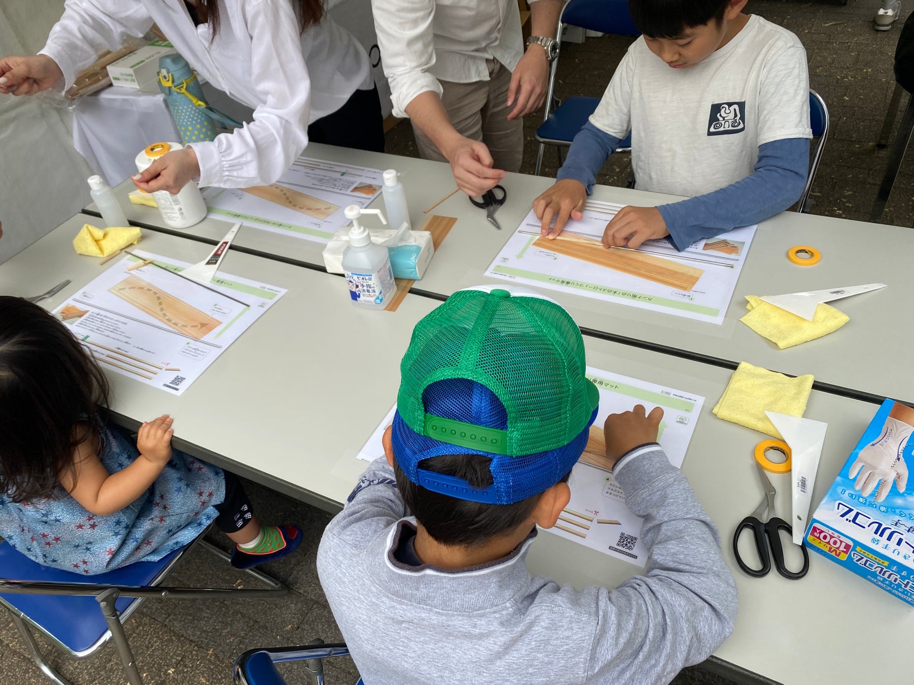 木のストローつくり体験可能日は、5月12日(日)・5月18日(土)・5月19日(日)の3日間。会場は東京都江東区有明 シンボルプロムナード公園にて「カンナ削りの木のストロー体験」ブースを出展。5月12日(日)の初日の開催時には多くの方々が間伐材を利用した木のストロー体験を通して、SDGsを体感しておりました。
