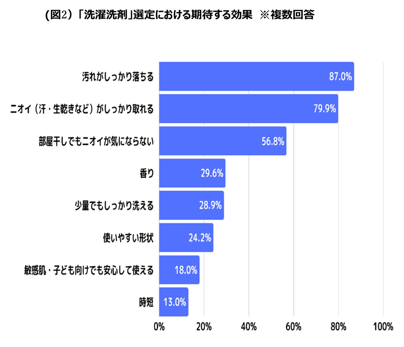 アンケート結果を見ると、洗濯物の“ニオイ”に関してお悩みのようです。洗濯物のニオイは、ちょっとした工夫で軽減できるのでぜひやってみてください。