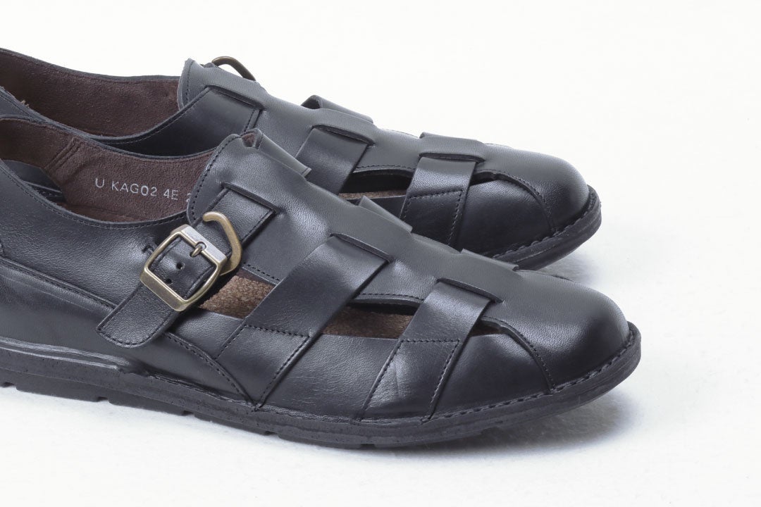 人気の「SLUカゴ」をより履きやすくすっきりしたデザインにリニューアル。たてよこに編み込んだ籠をイメージしたデザインのグルカサンダルです。
