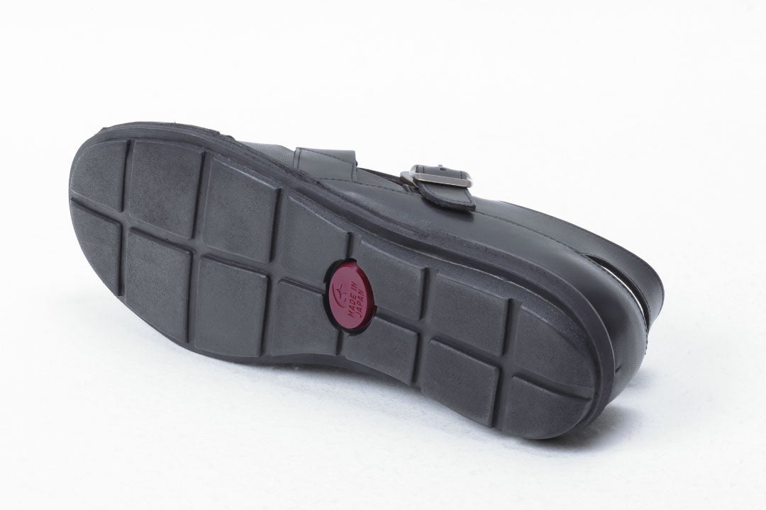 3.ムーンスターが独自に開発したベステックソールは、クッション性が高くフットベッドの役割をはたすため、負担がかかりにくいという魅力があります。劣化しにくいところもポイントです。さらに、ソールの「成型」とアッパーとの「接着」を同時に行うダイレクト・ウレタン・ソーリング(DUS)製法で仕上げることで、底はがれしにくく足裏に吸いつくような履き心地が得られます。