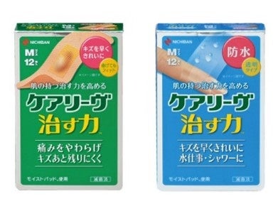 「ケアリーヴ(TM)治す力(TM)」は、モイストヒーリング(湿潤療法)で痛みを軽減し、キズを早くきれいに治す絆創膏です。レギュラータイプと防水タイプがあります。