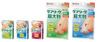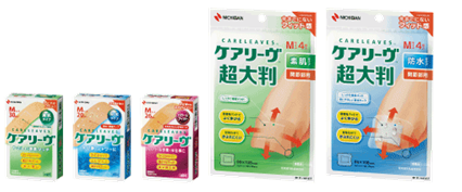 伸縮性と通気性に優れた高密度ウレタン不織布テープが肌にしなやかにフィットし、白くふやけにくい「ケアリーヴ(TM)」、防水透湿フィルムでキズぐちを水から保護する「ケアリーヴ(TM)防水タイプ」、丈夫な布テープではがれにくい「ケアリーヴ(TM)パワー&フィット」、関節部などの大きなキズにもしっかりフィットする「ケアリーヴ(TM)超大判」「ケアリーヴ(TM)超大判防水タイプ」をラインアップしています。様々なサイズと形状をご用意していますので、使用シーンや使用部位に合わせてお選びいただけます。