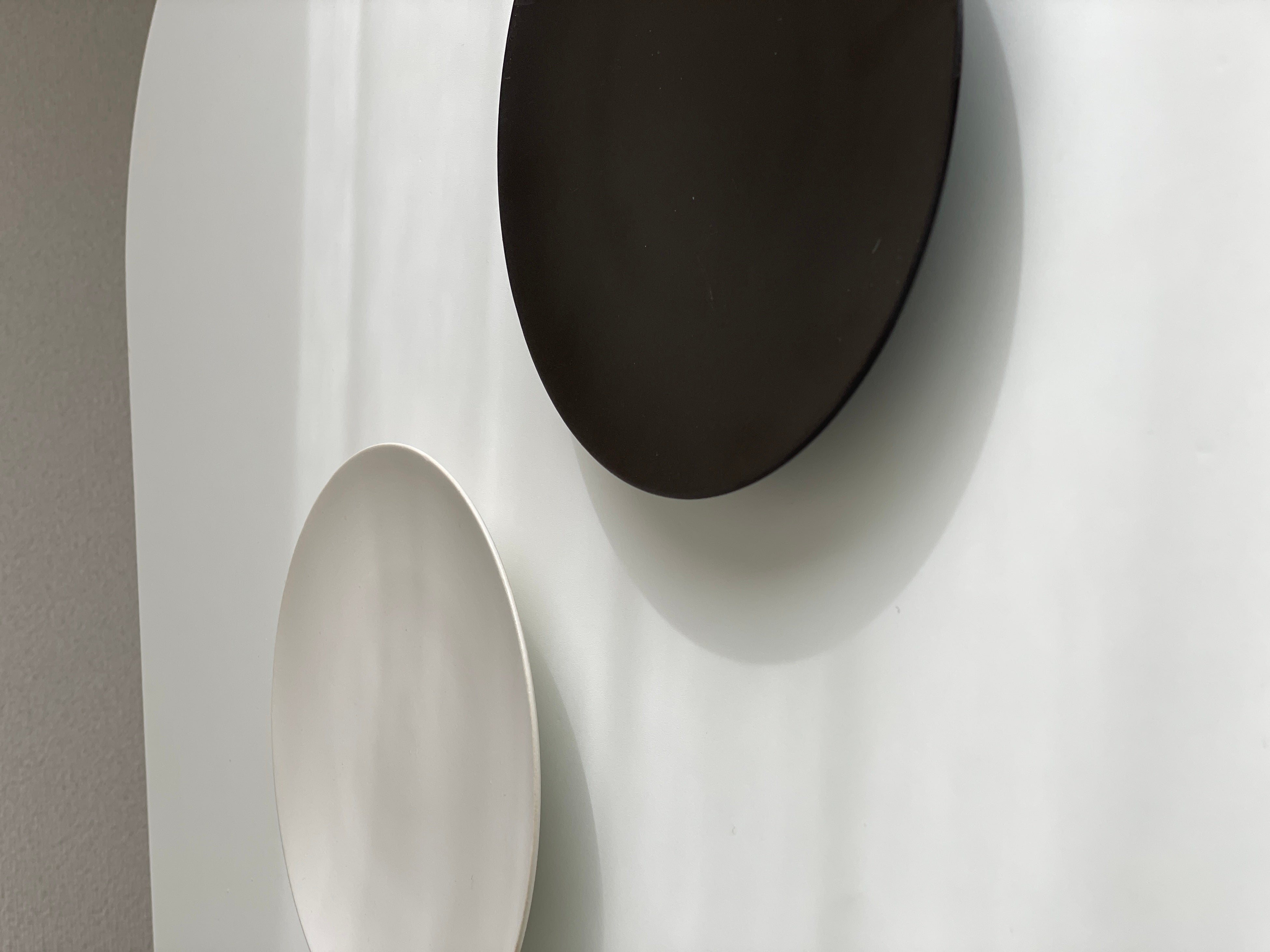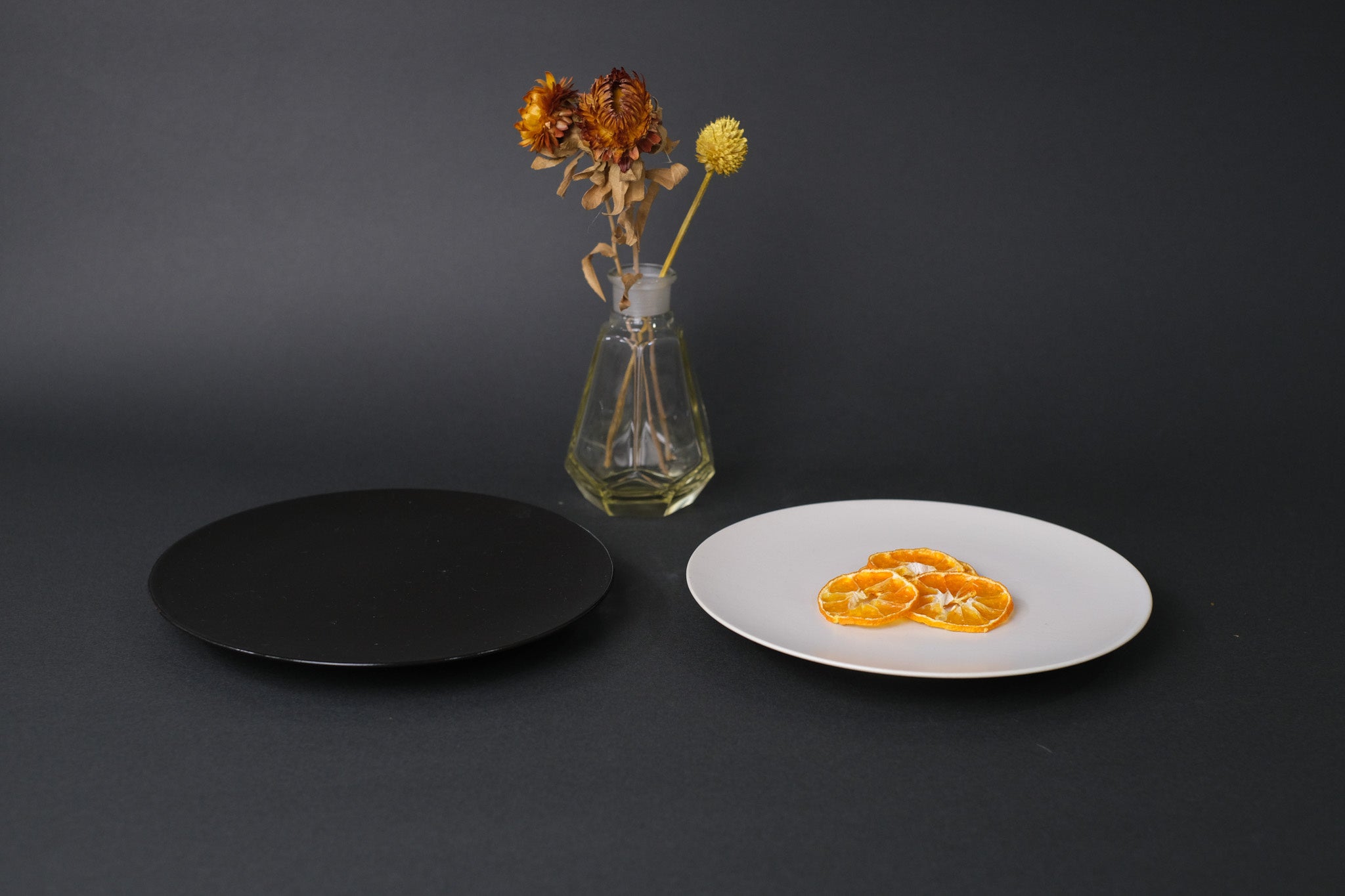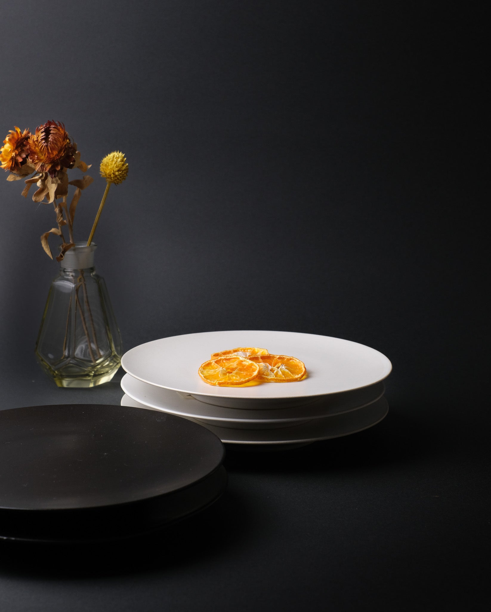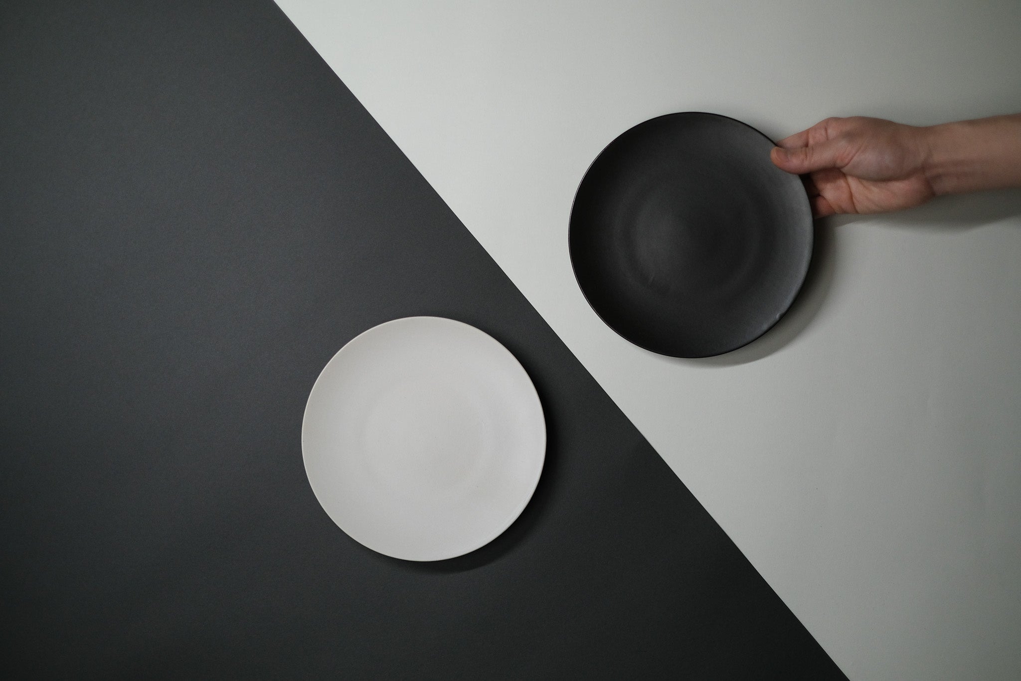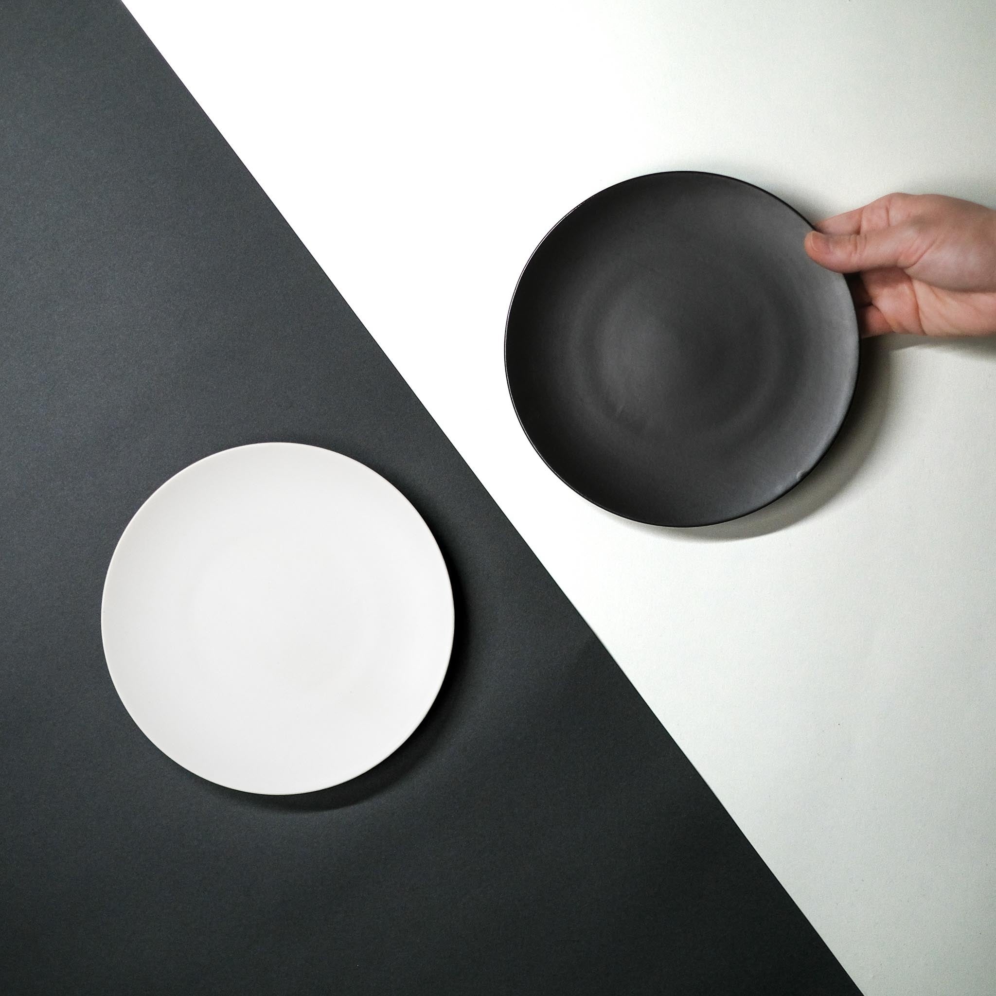 波佐見焼らしい白とシックな黒で、表面はマットな質感で上品な仕上がりになっています。直径約17.5cmとちょっとした小料理、取り皿にオススメのサイズ感です。