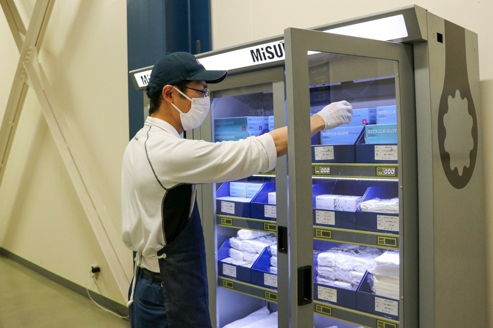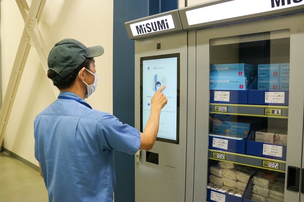 同社の小牧工場では、ゴム手袋やペーパーウエスなどの消耗品管理に紙ベースの購買依頼書を使用しており、現場と管理部門双方に大きな業務負荷がかかっていました。属人化による業務負荷や在庫切れの心配から“念のため”による過剰在庫が発生するなどの課題に対し、ミスミが提供する間接材トータルコストダウンサービス「MISUMI floow(フロー)」を導入。自販機による製品提供とミスミによる自動補充により、注文・補充業務を大幅に削減し、現場のペーパーレス化と業務効率化を実現しました。