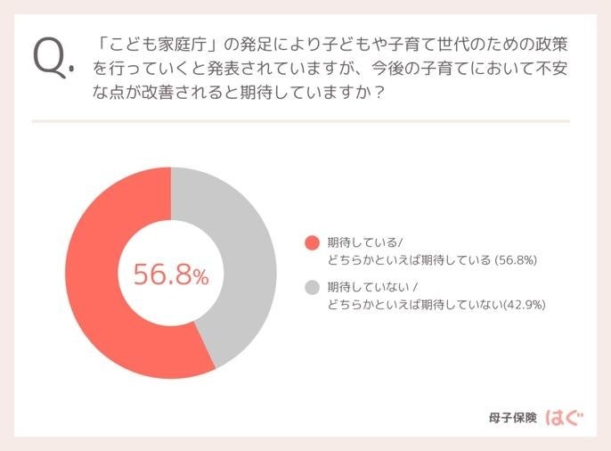 ■2023年4月に発足される「こども家庭庁」について、「知らない」と答えた方が90%となり、認知はまだまだ。しかし56.8%は「期待している」と回答。