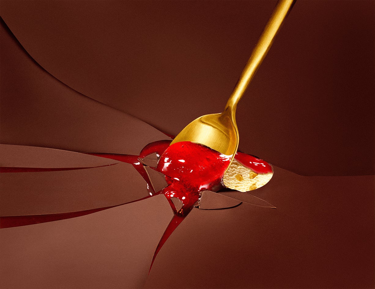 スプーンを入れてパリパリッと割れていくチョコの食感と、そこからじゅわっとあふれるソースで新しい食体験、感動体験をもたらす商品に仕上げることができました。