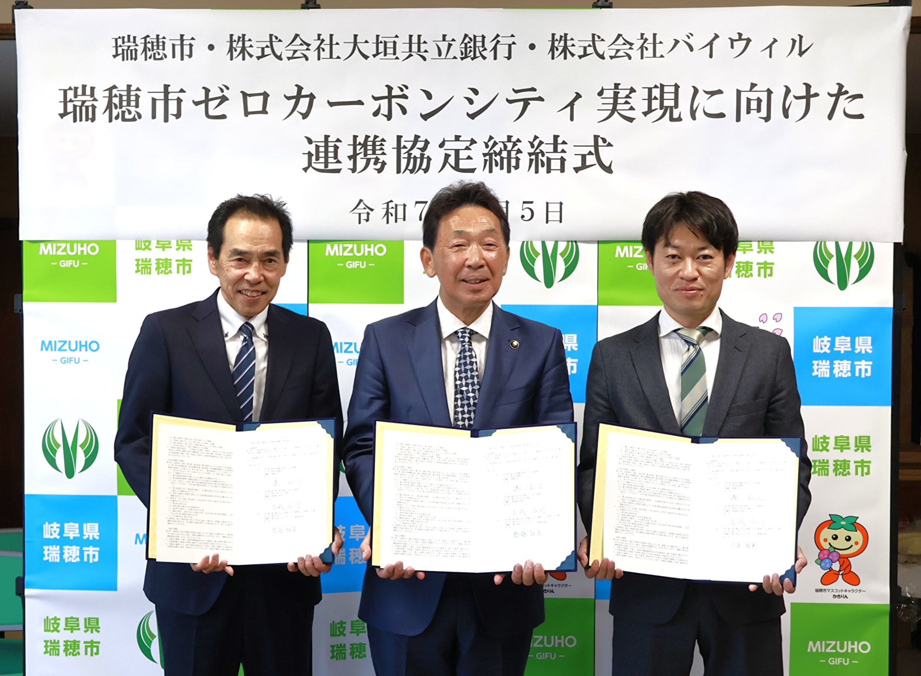 岐阜県瑞穂市、大垣共立銀行、バイウィルが「瑞穂市ゼロカーボンシティ実現に向けた連携協定」を締結
