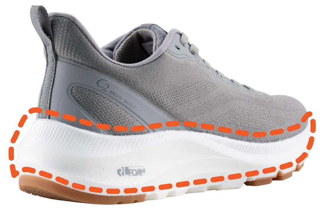 クッション性・反発性に優れた特殊素材ミッドソール「RLフォーム」を採用し、従来モデルから約5mmボリュームアップすることで、着地時の衝撃を和らげ、長時間の歩行やランニングも可能にしてくれます。また、靴底はブロックソールになっており、ゴツゴツした岩場もしっかり捉えアウトドアシーンも安心です。クッション性、屈曲性にも優れているので、歩行時のストレスが軽減されます。そしてこのシリーズ最大の特徴である透湿防水機能には特殊素材「C2ブレスシールド(防水膜)」(※)を採用し、外からの水の侵入を防ぎ、靴内部のムレを外に放出し、急な雨や、悪天候にも対応します。(※)4cm5時間防水機能搭載 ※完全防水ではありません。