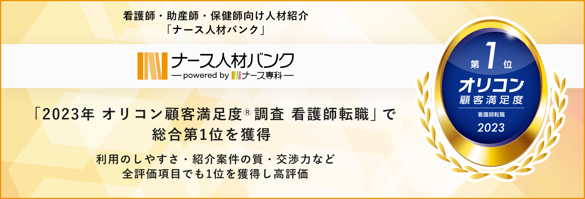 看護師・助産師・保健師向け人材紹介「ナース人材バンク」が「2023年 オリコン顧客満足度®調査 看護師転職」で総合第1位を獲得