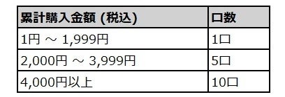 実施期間中の累計購入金額に応じて、山分け口数が最大10口♪