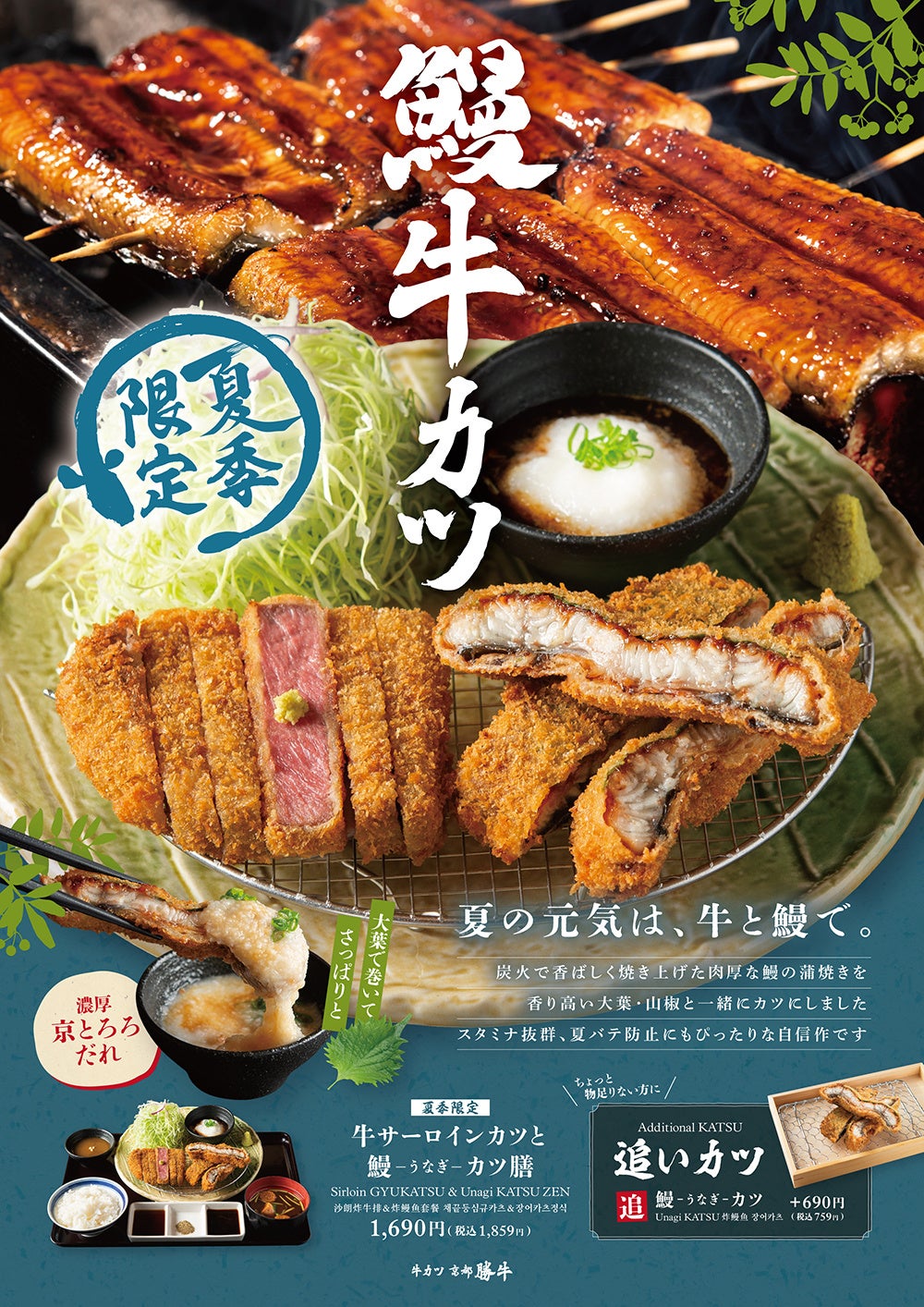 贅沢な「牛カツと鰻カツ」の組み合わせは、スタミナ抜群・夏バテ防止にもぴったりな自信作です。