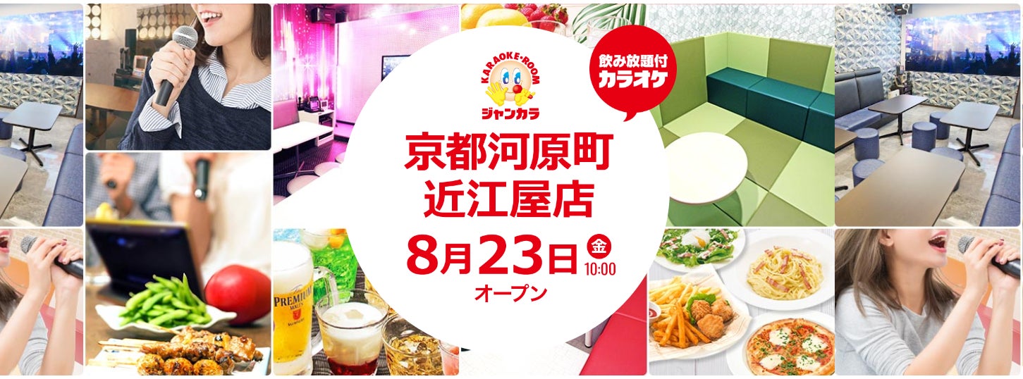 全国で181店舗を展開し、西日本においてカラオケチェーン業界最大規模を誇るジャンカラは、本日、京都市河原町に「ジャンカラ京都河原町近江屋店」をオープンしました。