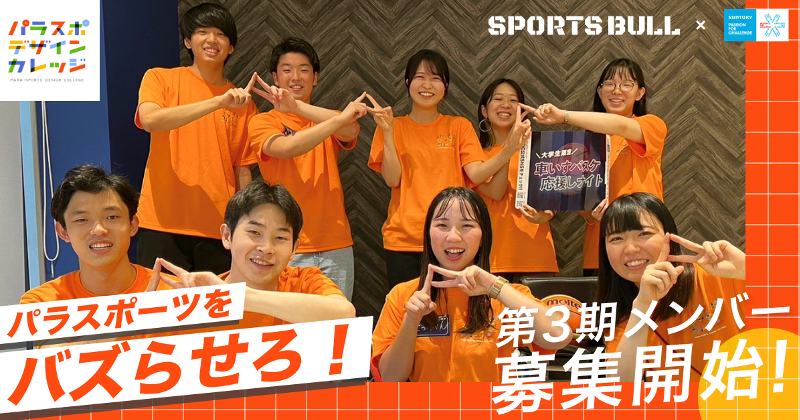 インターネットスポーツメディア「SPORTS BULL(スポーツブル)」を運営する株式会社運動通信社(本社:東京都港区、代表取締役社長:黒飛 功二朗 以下、運動通信社)とサントリーホールディングス株式会社(本社:大阪府大阪市、代表取締役社長:新浪 剛史 以下、サントリー)は、若年層向けにパラスポーツの魅力を伝えていくプロジェクト「パラスポデザインカレッジ」の3期生メンバーの募集を開始いたします。