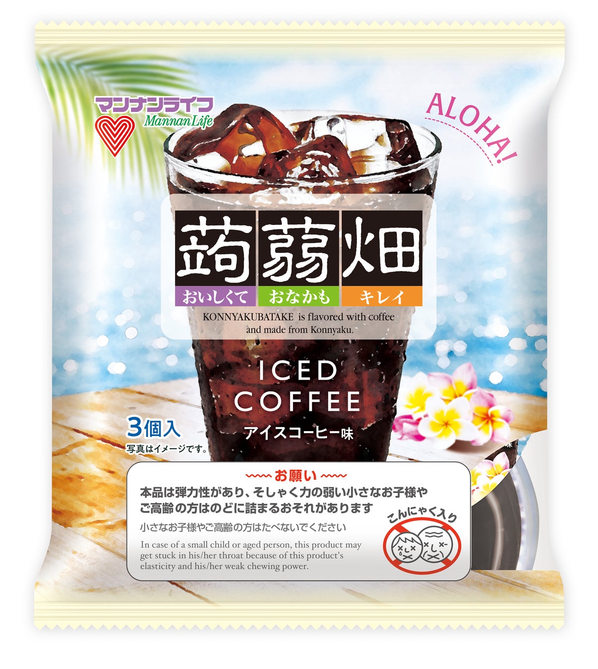 ハワイを感じるパッケージの「蒟蒻畑 アイスコーヒー味」を、スパリゾートハワイアンズの来場者に無料で配布するサンプリングイベントを、2024年8月の土日に、スパリゾートハワイアンズ館内で実施します。