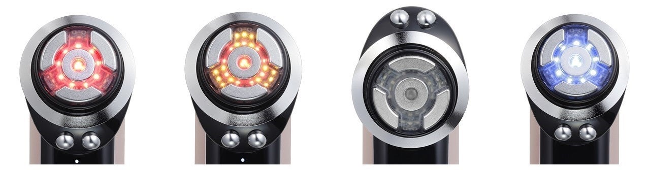 RF、高周波EMS、イオン導出、NEO DYHP、赤色LED、橙色LED、青色LED、マイクロカレント、冷却、振動の10機能を搭載。