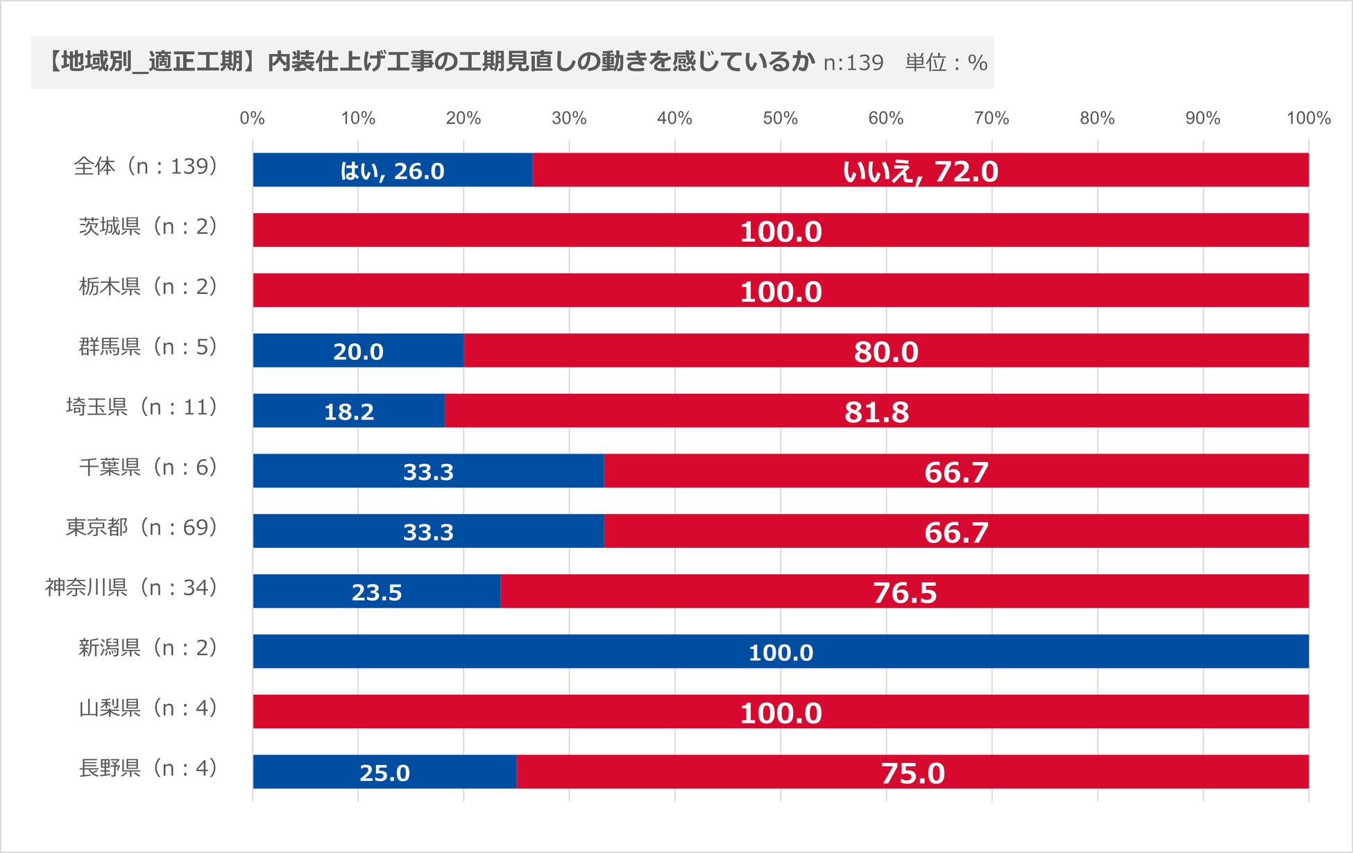 【首都圏】内装仕上げ工事業、「適正工期への見直しの動き実感せず」と6割が回答
