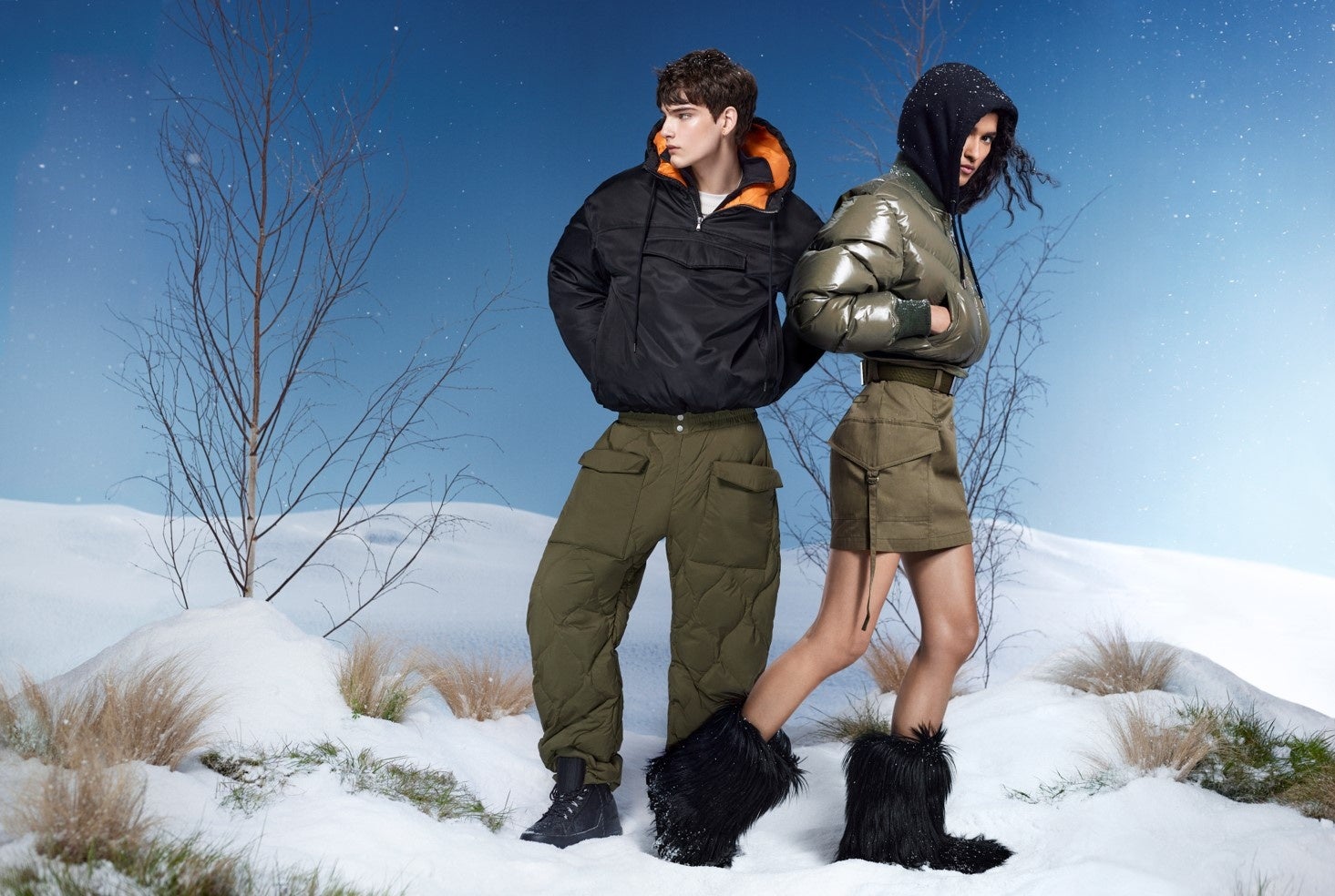 ダウンジャケットのテクニックを探求することで、デザイン性の高いジャンプスーツやクロップド丈のダウンジャケット、キルティング調のダウンスカート、ダウンパンツなどへシフトし、様々なアイテムを展開しています。