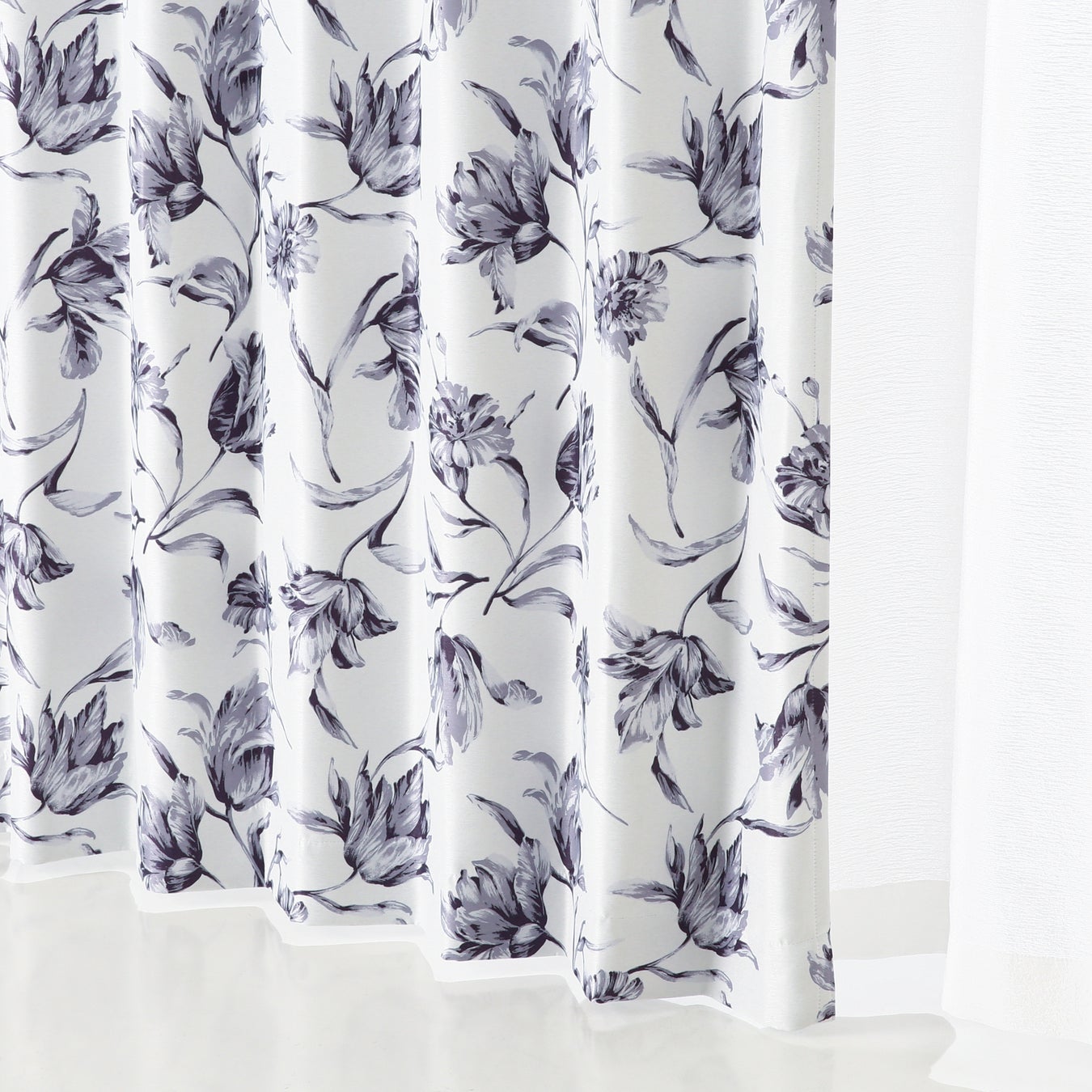 ほどよい張り感のある生地に曲線が美しいチューリップ柄のプリントが映えるデザインのカーテンです。華やかながらも落ち着きあるカラーはお部屋を上品な印象にしてくれます。(遮光等級:2級)