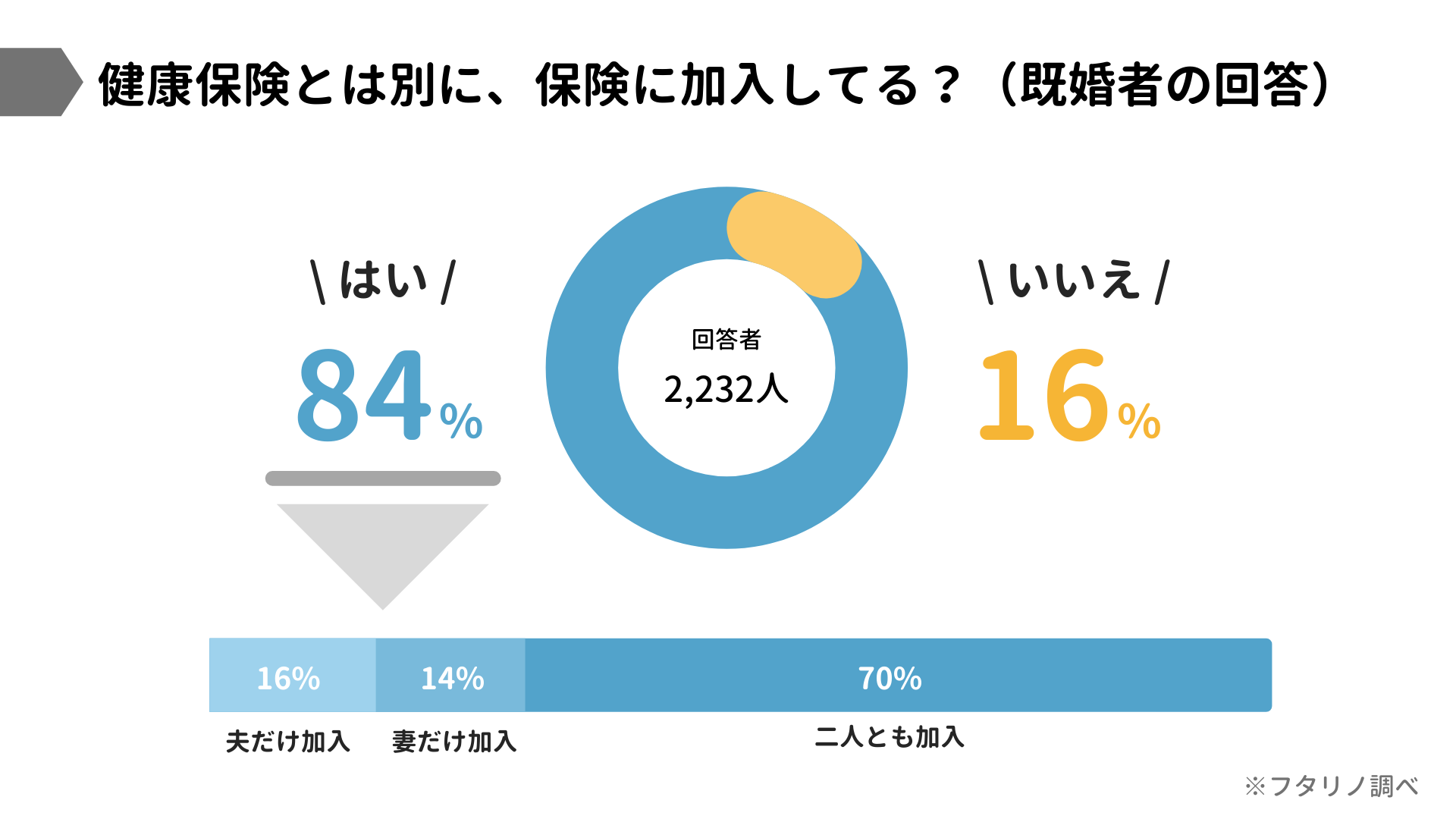 パートナーシップのホンネをシェアするコミュニティ・フタリノ(所在地:東京都新宿区、代表 清水愛)は、「夫婦の保険」に関するアンケート調査を実施し、20~30代中心に既婚男女約2,000人が回答しました。