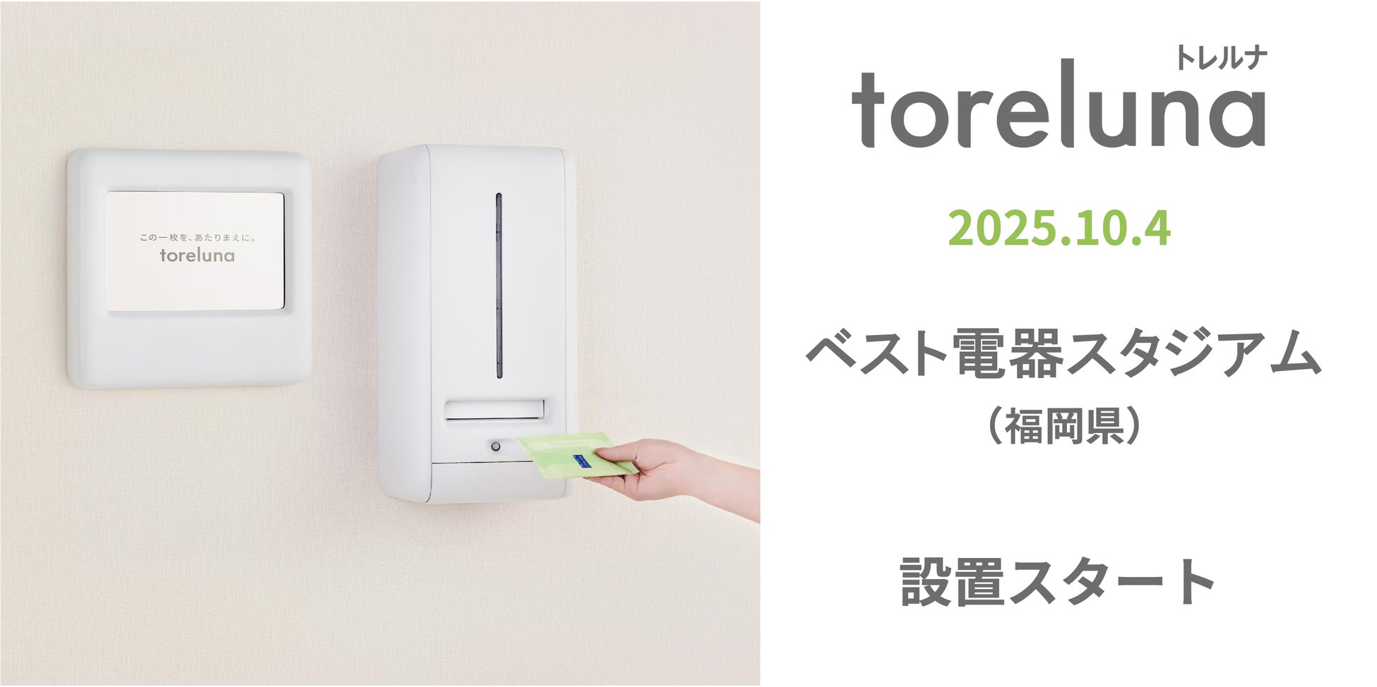 株式会社ネクイノ(大阪市北区、代表:石井 健一)は、トイレの個室で生理用ナプキンを常備し無料で提供するサービス「toreluna(トレルナ)」(以下 トレルナ)を、福岡市が所有し、公益財団法人福岡市緑のまちづくり協会が管理・運営する東平尾公園博多の森球技場(以下、ベスト電器スタジアム)へ設置し、サービスの提供を開始いたしました。