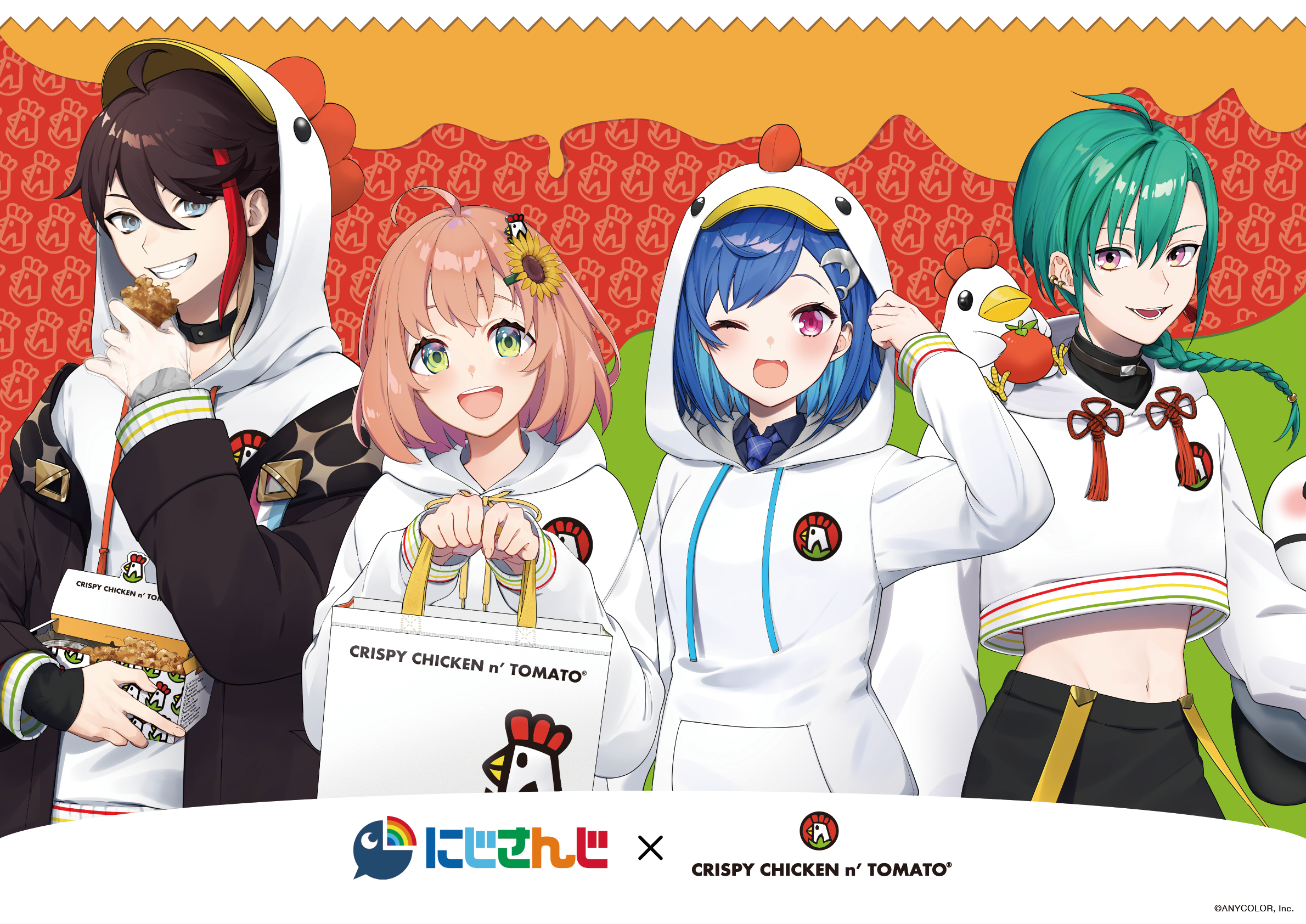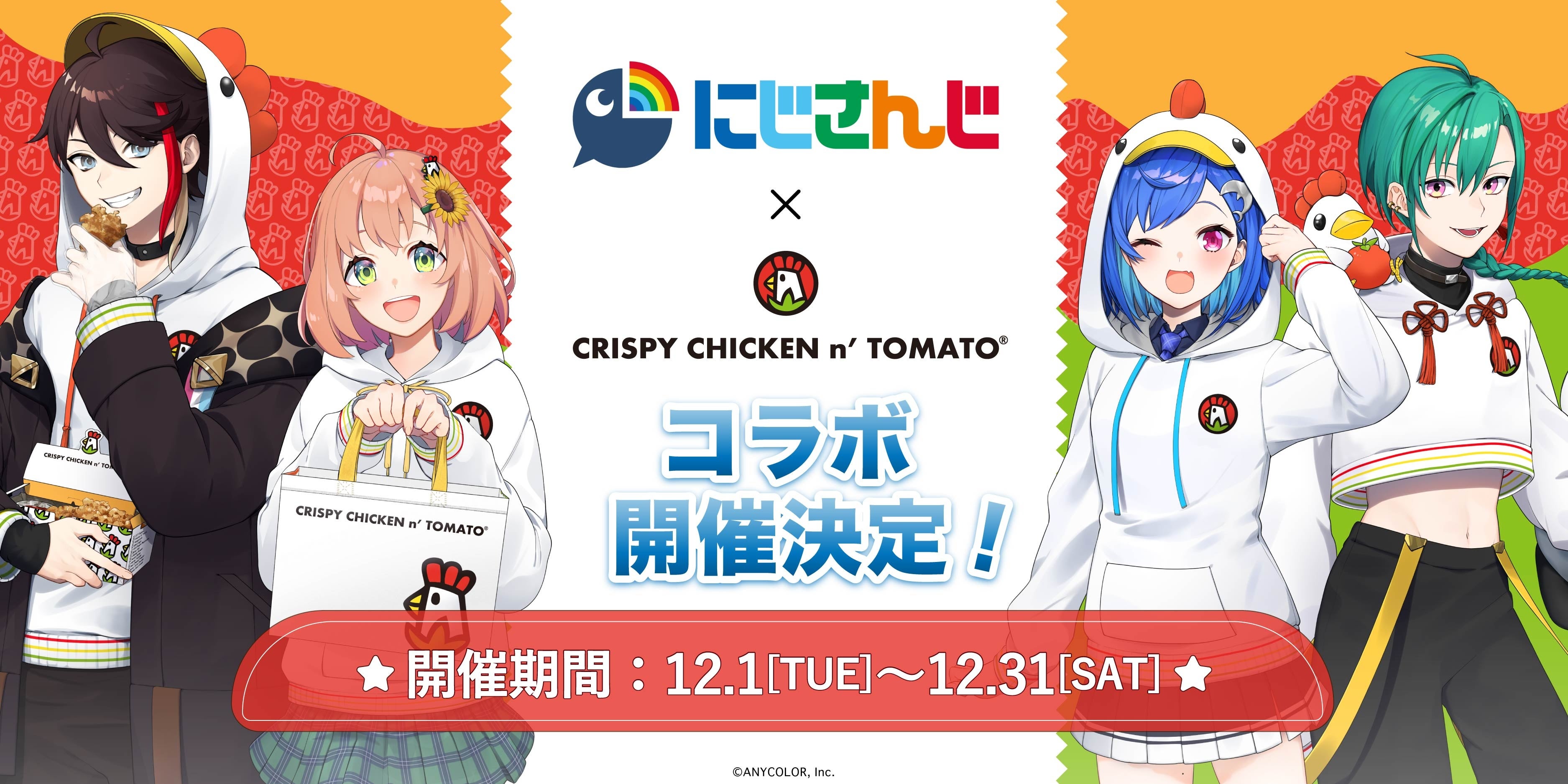 アニメ、 ゲームあらゆるジャンルのキャラクター商品や販促グッズの企画、 製造、 販売をする株式会社プレイフルマインドカンパニー(代表取締役:大塚清隆、 本社:東京都台東区)は、『クリスピーチキンアンドトマト』と、株式会社ANYCOLORが運営を行っている『にじさんじ』とのコラボを開催することを決定致しました。