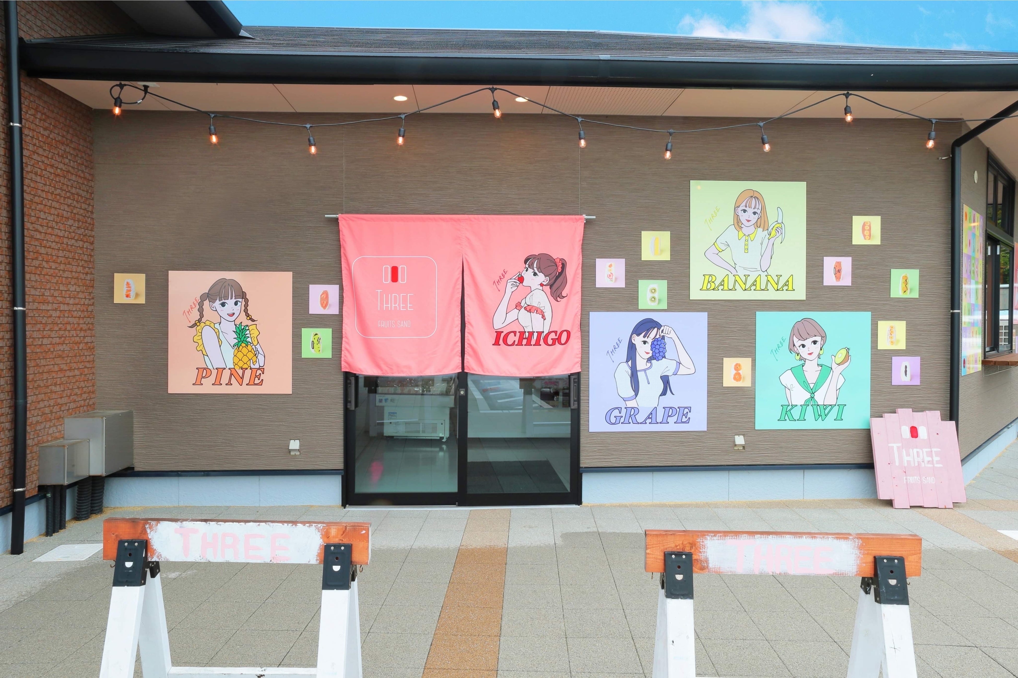 店名やロゴの「THREE」=「Ⅲ」には、お孫さんからおじいちゃんおばあちゃんまで、3世代でお出かけの目的地になるようなお店になれたら、との想いが込められています。