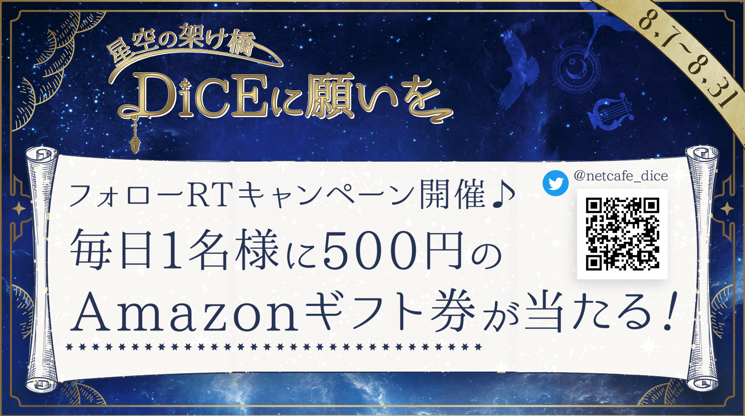 参加条件はDiCE公式X(Twitter)「@netcafe_dice」をフォローし対象ツイートをリポストすれば完了です。