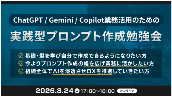 XOP、ChatGPT/Gemini/Copilot業務活用のための実践型プロンプト作成勉強会を 3/24(火)に開催