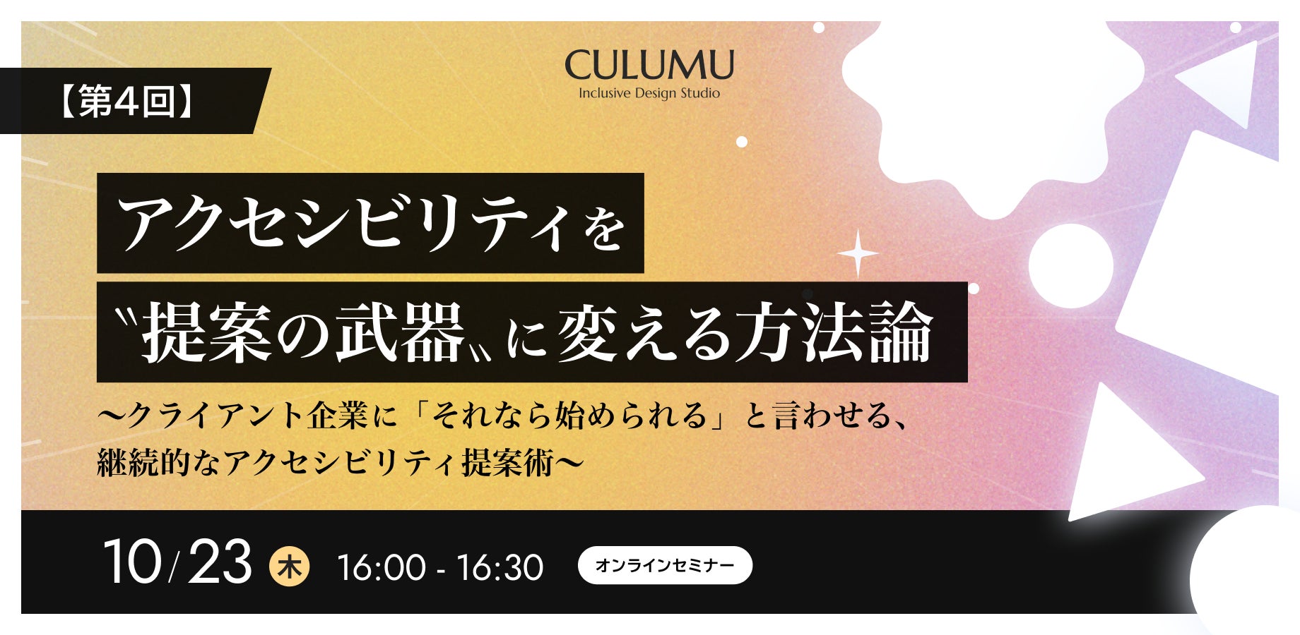 【10/23 セミナー開催】アクセシビリティは「一括治療」から「毎月の健康診断」へ。顧客と継続的な関係を築くためのCULUMUの支援体制を徹底解説します。