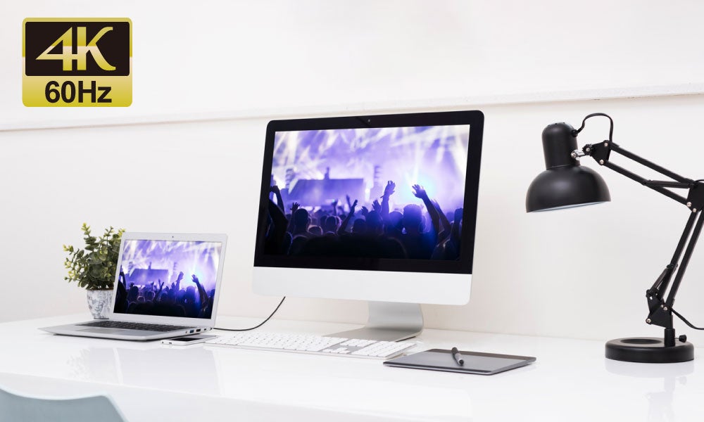 4K60Hz出力に対応しており、高精細でなめらかな映像を楽しむことができます。大画面での作業はもちろん、動画鑑賞などのプライベートシーンでも活用可能です。