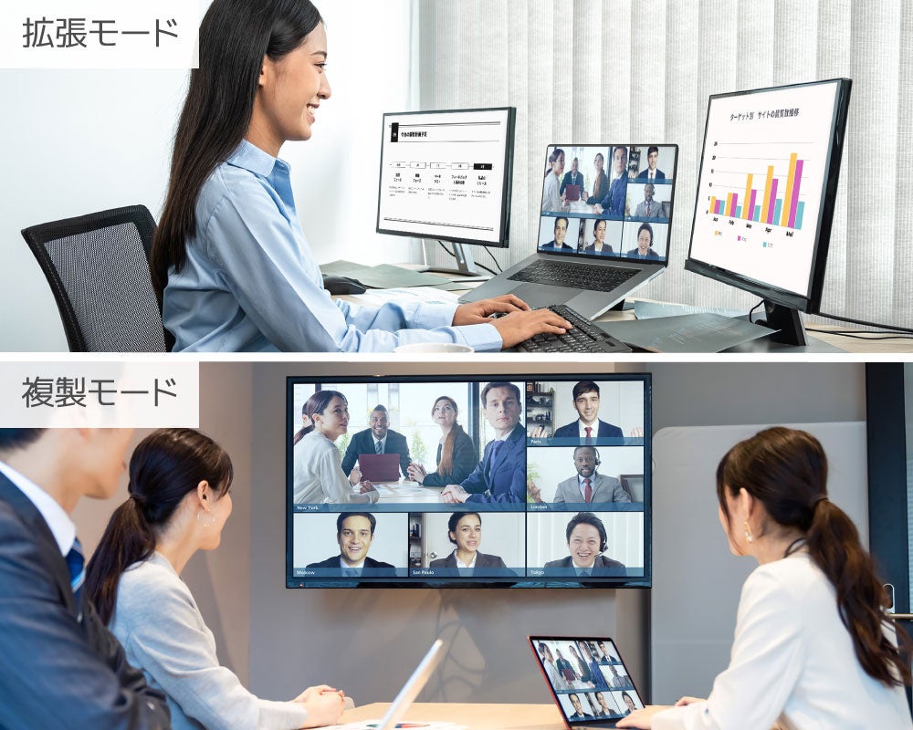 また、複製モードは同じ画面が表示されるため、大画面での作業やプレゼンに適しています。