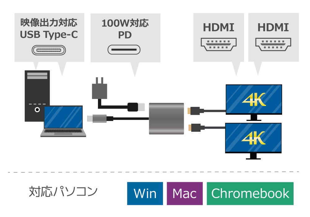 製品名:USB Type-C to デュアルHDMIディスプレイアダプター(PD対応)