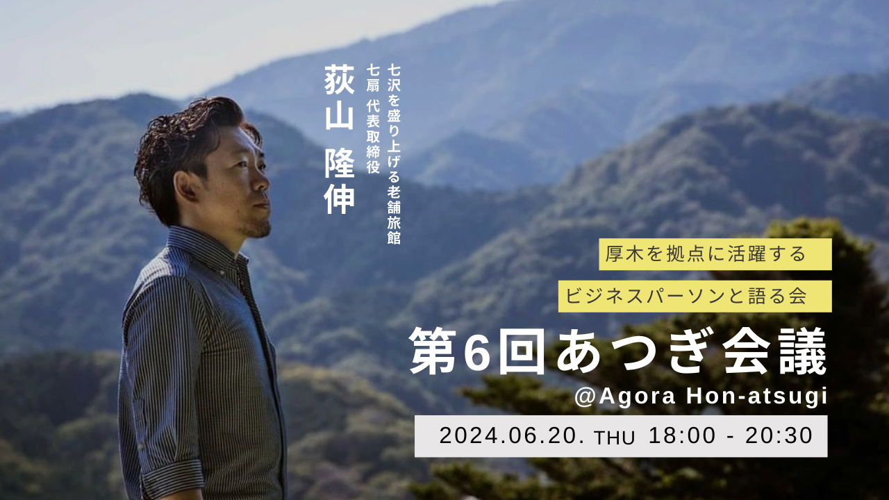 厚木市の七沢温泉といえば!七扇(旧:盛楽苑)代表がビジネスの成長ストーリーを語る。座談会イベント「第6回あつぎ会議」が6月20日(木)開催@インキュベーションオフィスAGORA Hon-atsugi