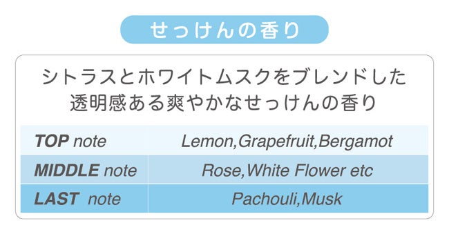シトラスとホワイトムスクをブレンドした透明感あふれる爽やかなせっけんの香り