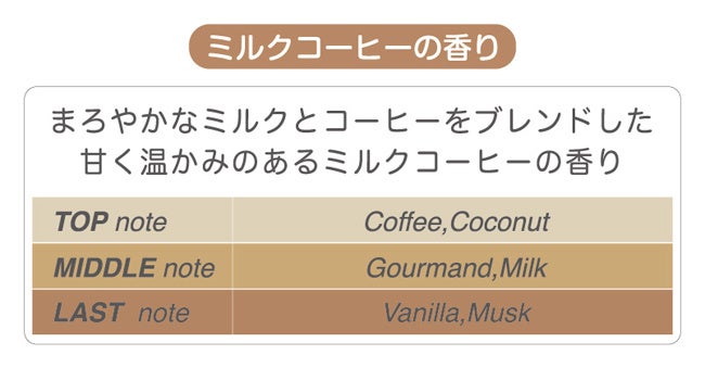 まろやかなミルクとコーヒーをブレンドした甘く温かみのあるミルクコーヒーの香り