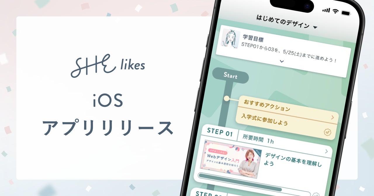 学ぶから働くまでを支援する女性向けキャリアスクール「SHElikes(シーライクス)」を運営するSHE株式会社(所在地:東京都港区、代表取締役CEO/CCO:福田恵里、以下SHE)は、スキル獲得のための学習習慣の定着をサポートするSHElikes受講生向けの「SHElikesアプリ」をリリースしました。