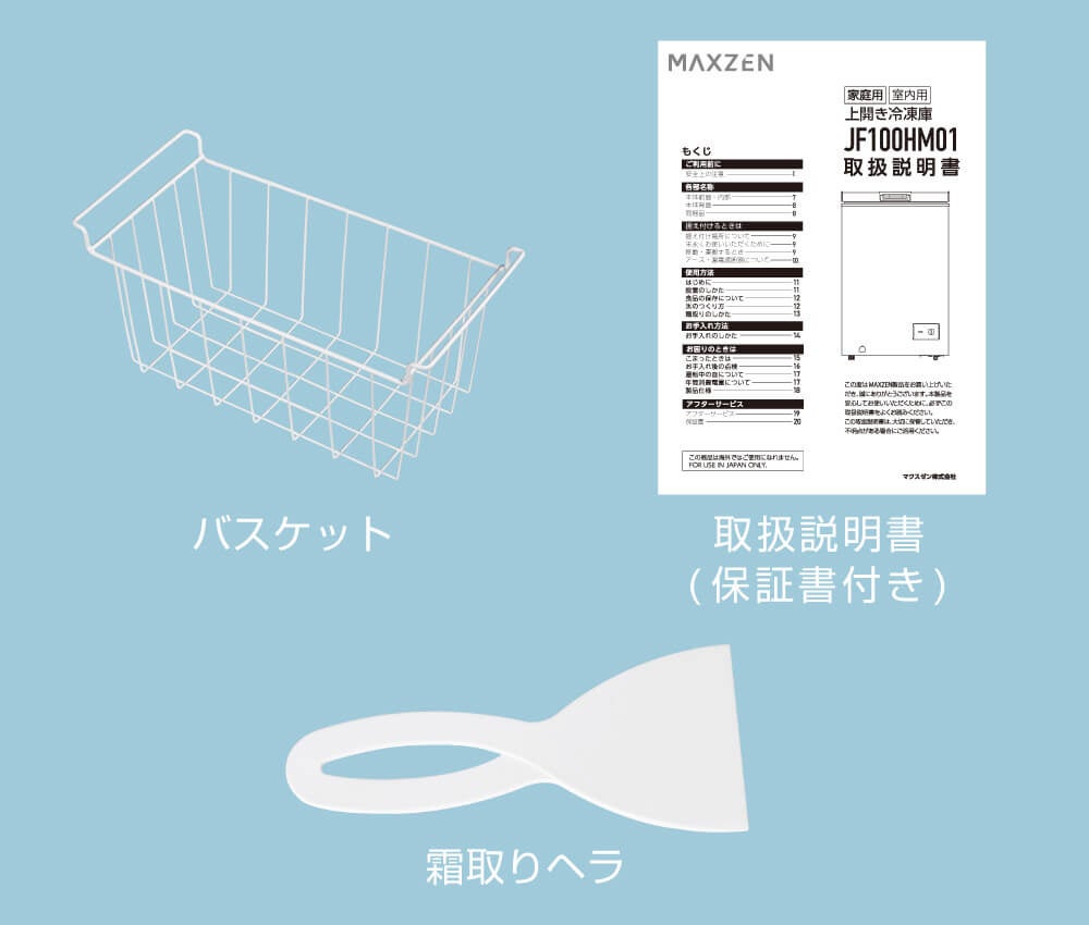 ワイヤーバスケットを付属しており、小物(個包装の冷凍食品など)を整理整頓して保存することができ、スムーズに取り出すことができます。