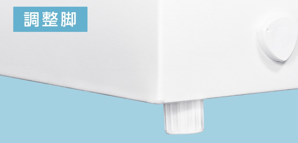 本体底面に取り付けられている調節脚によって、高さを調節して本体を水平に調整できます。また、底面の設置面積が減少するため、床へのダメージを防止できます。