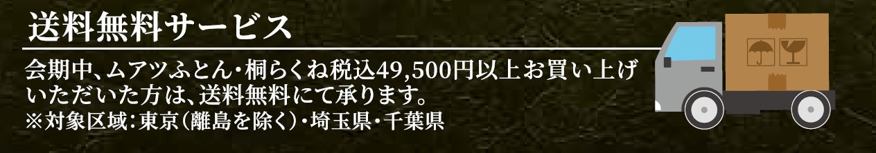 期間中、ムアツ、桐らくねを税込49,500円以上お買い上げの方には、下記地域への配送を無料で承ります。