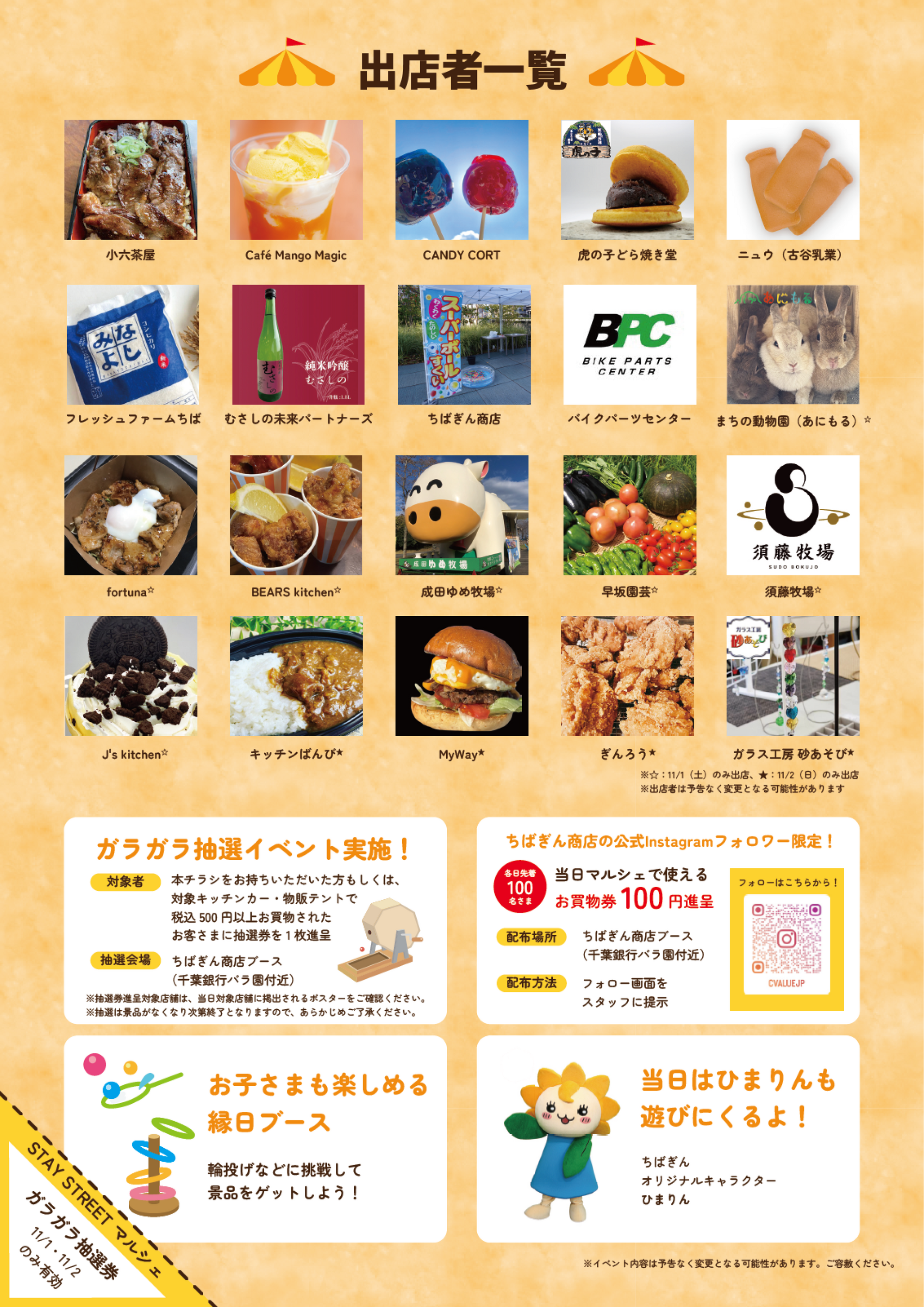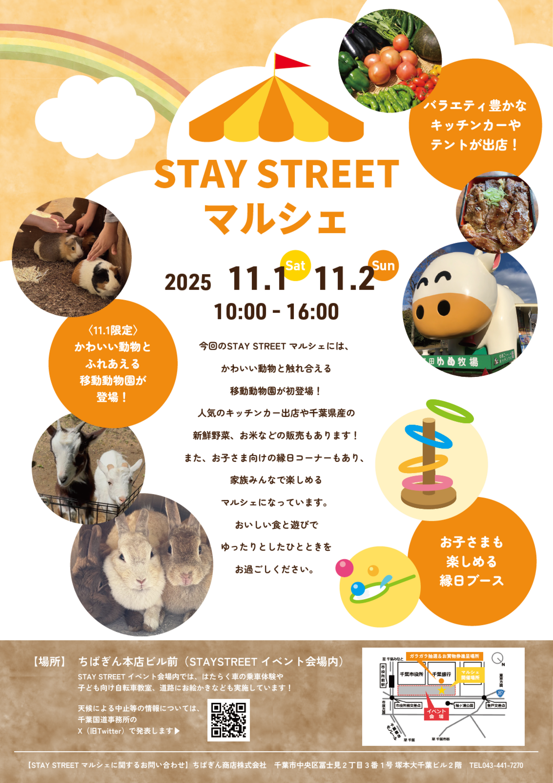千葉銀行(頭取 米本 努)は、11 月1 日(土)と11月2 日(日)の2 日間、ちばぎん本店ビル前の国道上部空間において「STAY STREETマルシェ」を開催します。