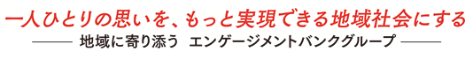 当行グループは、パーパスに掲げる「一人ひとりの思いを、もっと実現できる地域社会にする」ため、地域活性化の取組みを応援し、地域に寄り添うエンゲージメントバンクグループを目指してまいります。