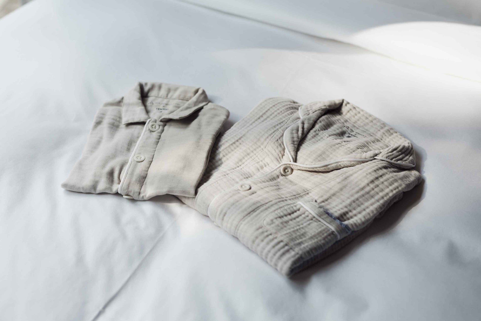 客室に導入しているテンシャルのリカバリーウェア「BAKUNE Pajamas Gauze」は、シックスセンシズ 京都だけで着用いただくことのできる限定モデルとなります。サステナブル素材の再生ポリエステルを同モデルにのみ採用し、肌に触れる面をコットンガーゼ素材にすることで、ヒトにも、環境にも配慮しています。