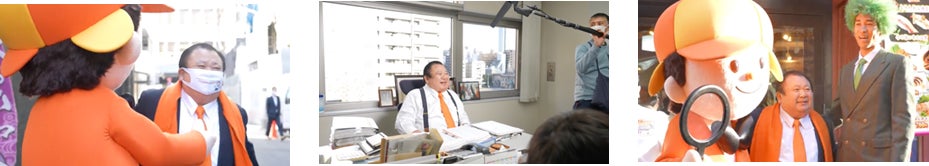 オレンジ色のネクタイを着用した木村社長が、大勢の撮影スタッフに少し驚きながらも、笑顔で撮影現場に登場。住まい探しサイトの併用利用についての質問シーンでは、監督の指示のもと、一生懸命演技に挑戦している様子が印象的でした。「最後にお部屋探しといえば?」という質問に対し、椅子の背もたれに寄りかかりながら「はいはい!」と反応するシーンでは、勢い余って立ち上がってセリフをいってしまうなど、お茶目な一面も垣間見ることができました。また、名物“ざんまいポーズ”の撮影では、30秒間のポージングに「長いね、これは!!」と驚きながらも、何度もチャレンジする場面も。インタビューでも木村社長からあの長さは始めてというコメントもあり、過去最長の“ざんまいポーズ”の撮影となりました。築地場外市場のすしざんまい本店前での撮影では、大勢の人だかりができていました。常に笑顔と周囲への気遣いを忘れない木村社長に撮影現場も終始和やかな雰囲気で進んでいきました。
