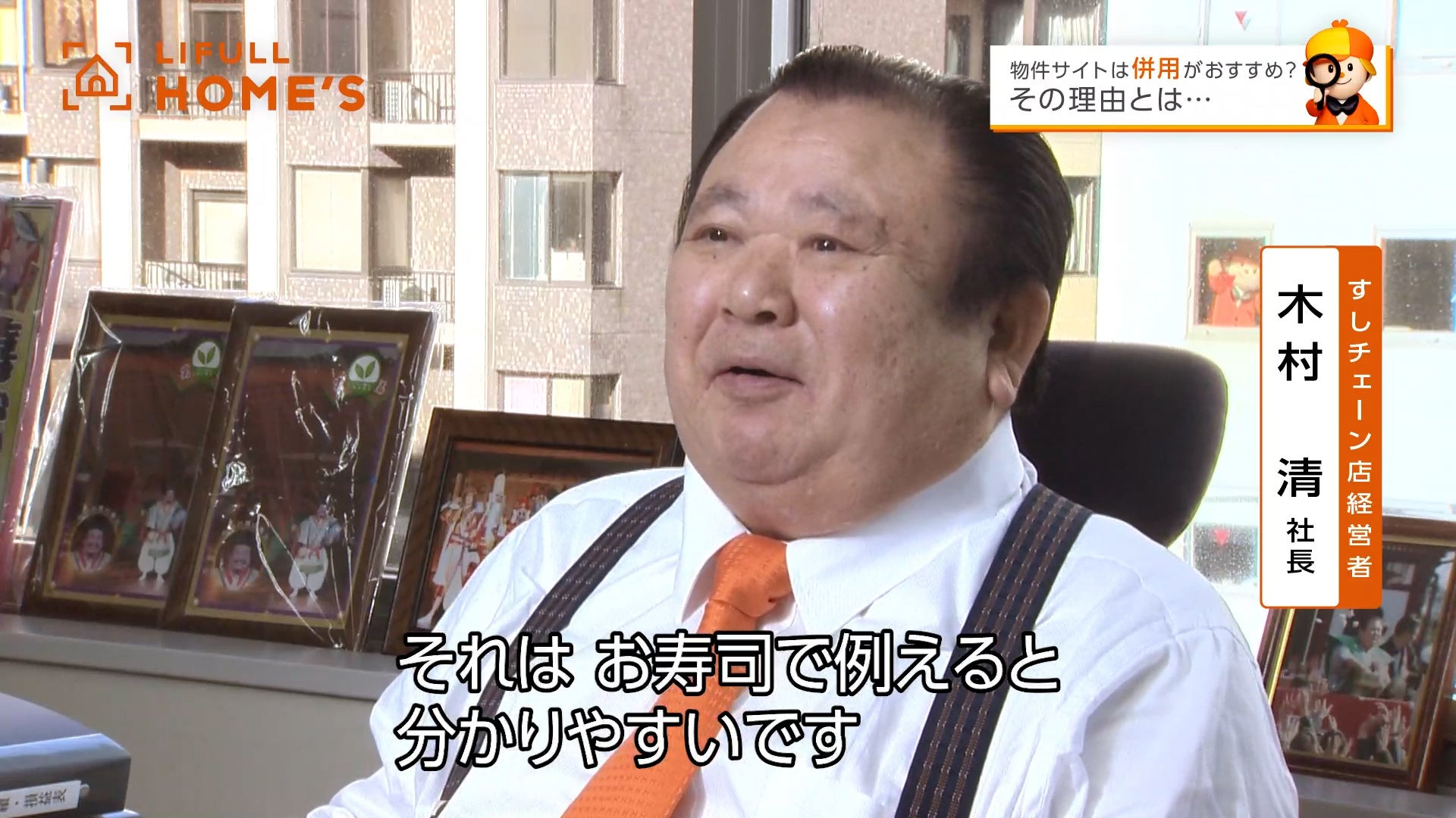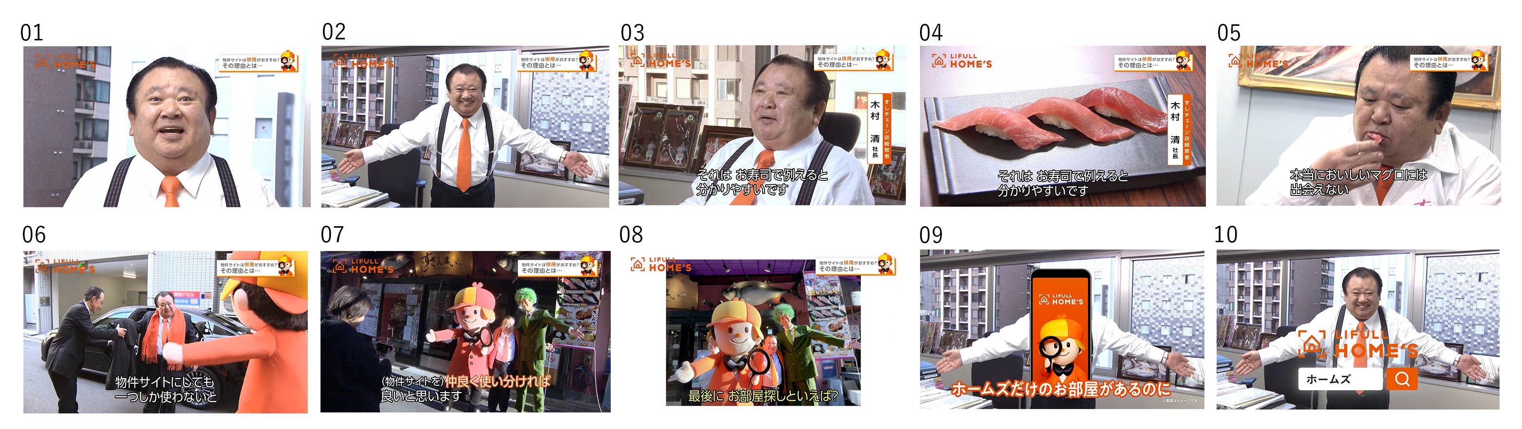 さらに、SNSで話題を集めた、「お寿司といえばすしざんまい!」の“すしざんまい”部分のセリフが封印された過去の番組をパロディする演出で、気さくな人柄を通して、「1つのサイトでしか探さないなんてもったいない」が伝わるCMに仕上がりました。初のCMタレントとして演技に挑戦する木村社長とLIFULL HOME'Sのキャラクターのホームズくんとの共演も見どころのLIFULL HOME'S新WEB CM「お寿司で例えてみました」篇にご期待ください。