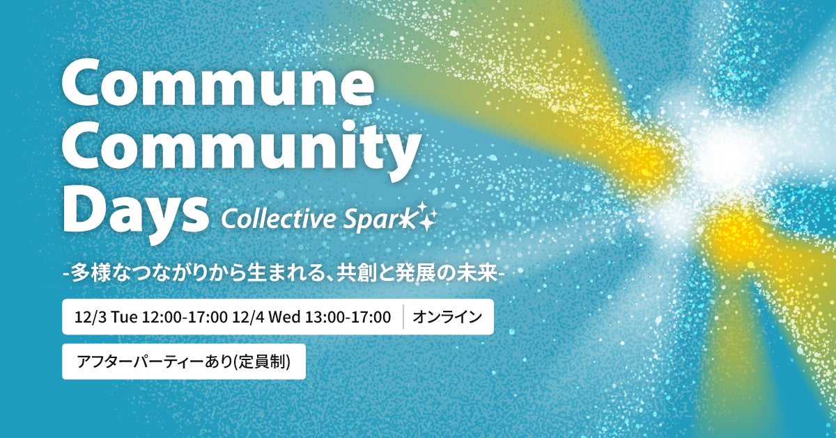 コミューン株式会社(本社:東京都品川区、代表取締役CEO:高田優哉)は2024年12月3日(火)・4日(水)に、コミュニティに関わる全ての方に向けた無料オンラインカンファレンス「Commune Community Days Collective Spark -多様なつながりから生まれる、共創と発展の未来-」を開催することをお知らせします。各業界のキーパーソンを招聘し、完全無料で開催します。