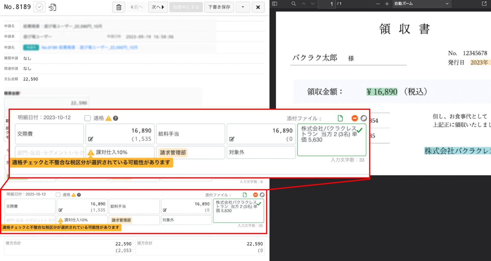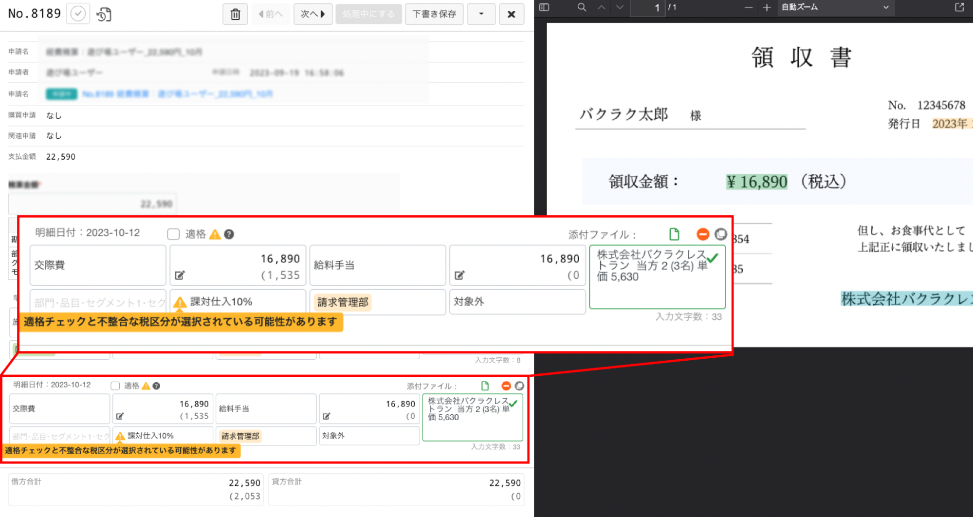 アップデート②:不適切な税区分が選択されている場合にアラートを掲出